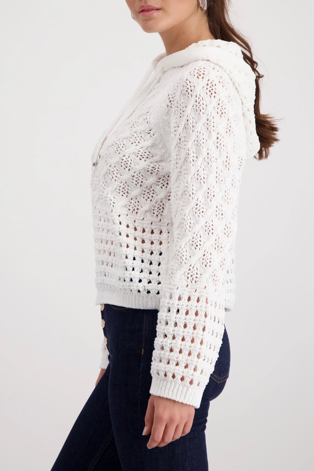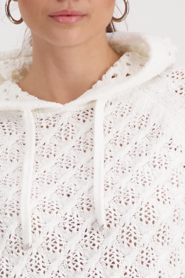 Jersey de punto suave de ochos en blanco roto con capucha.