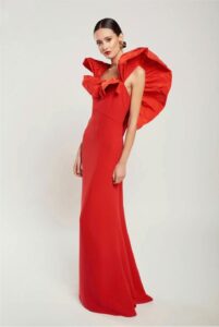 Sin duda MARELLA es un vestido de impacto si tienes un evento importante, de línea sirena y con un volante de tafeta en el escote, marca la figura sin excesos .