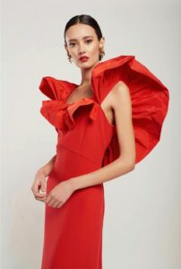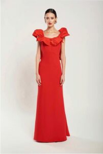 Sin duda MARELLA es un vestido de impacto si tienes un evento importante, de línea sirena y con un volante de tafeta en el escote, marca la figura sin excesos .