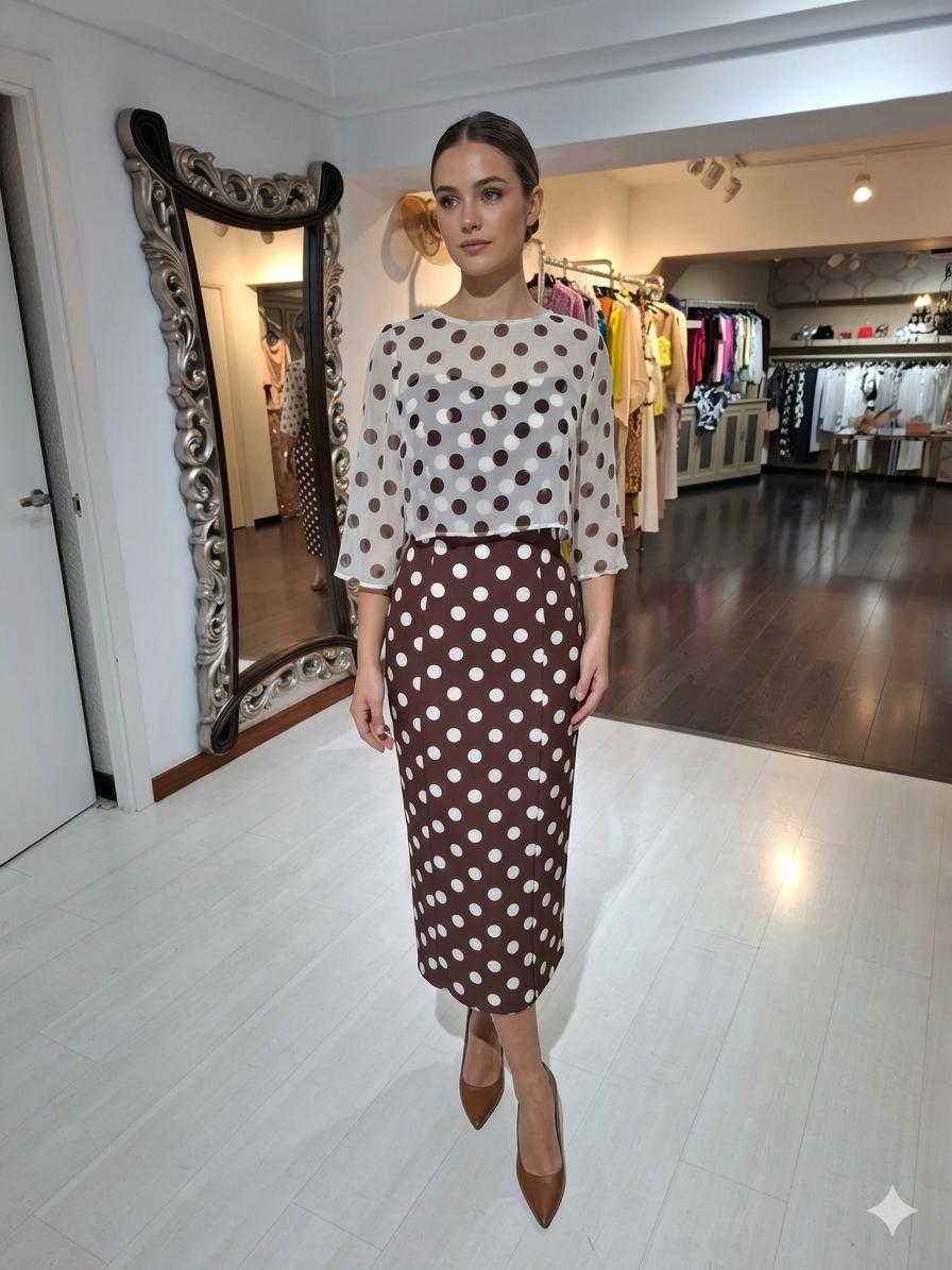 - Marrón chocolate con lunares blancos